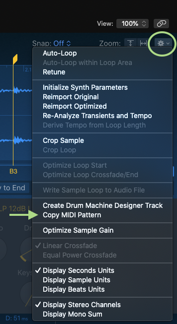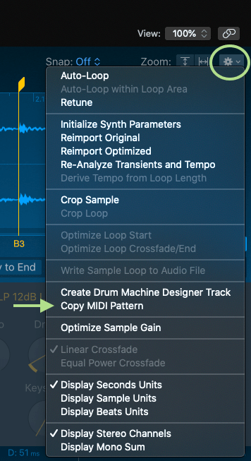 In each of these cases, you can use the gear menu to copy the MIDI pattern and paste it as a region on your track. When you play it back, it should sound like the original.